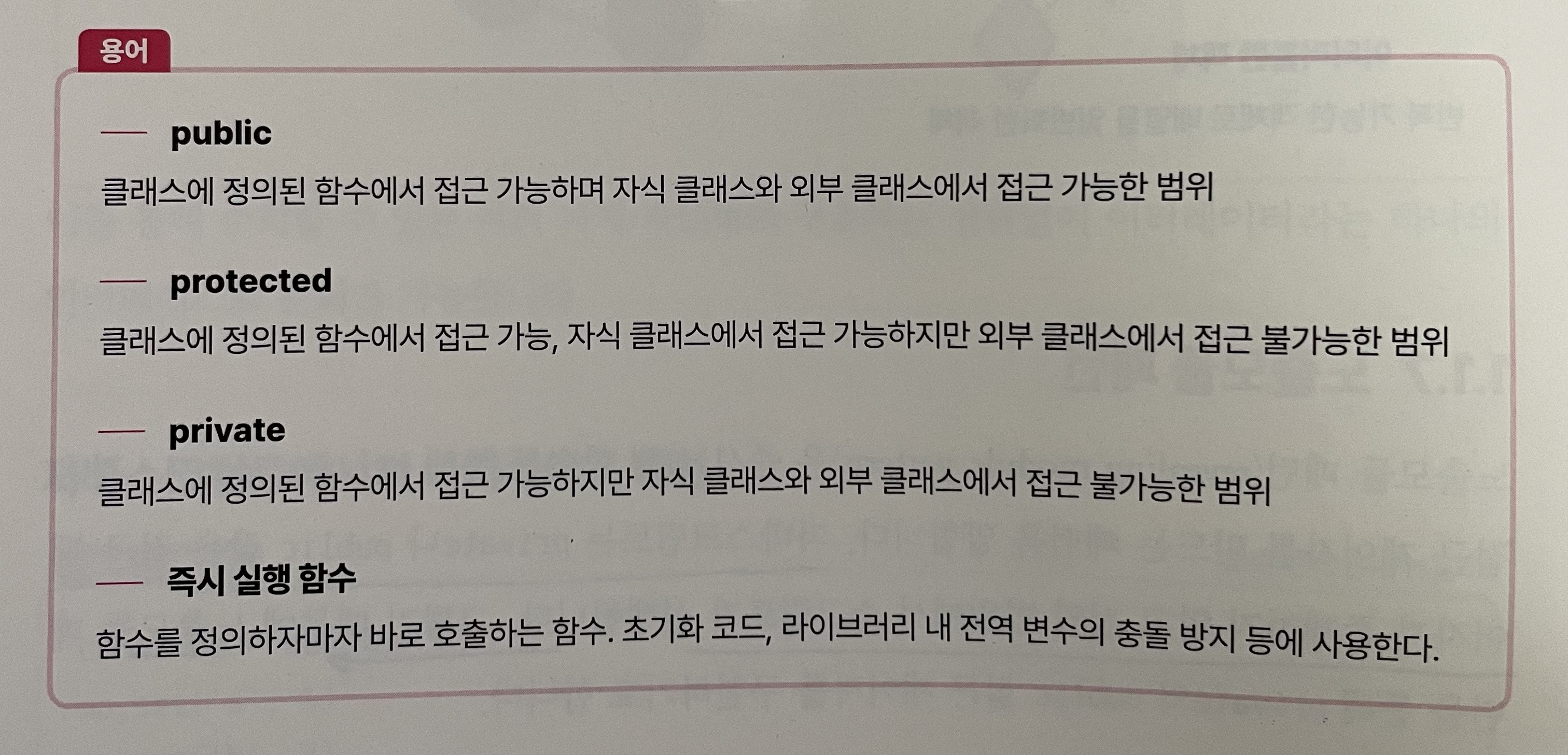 자바스크립트에서는 private, public을 흔하게 쓰는 편은 아니라고 생각되기에 이렇게 범위를 가리키는 용어에 대해 헷갈릴 수 있다.