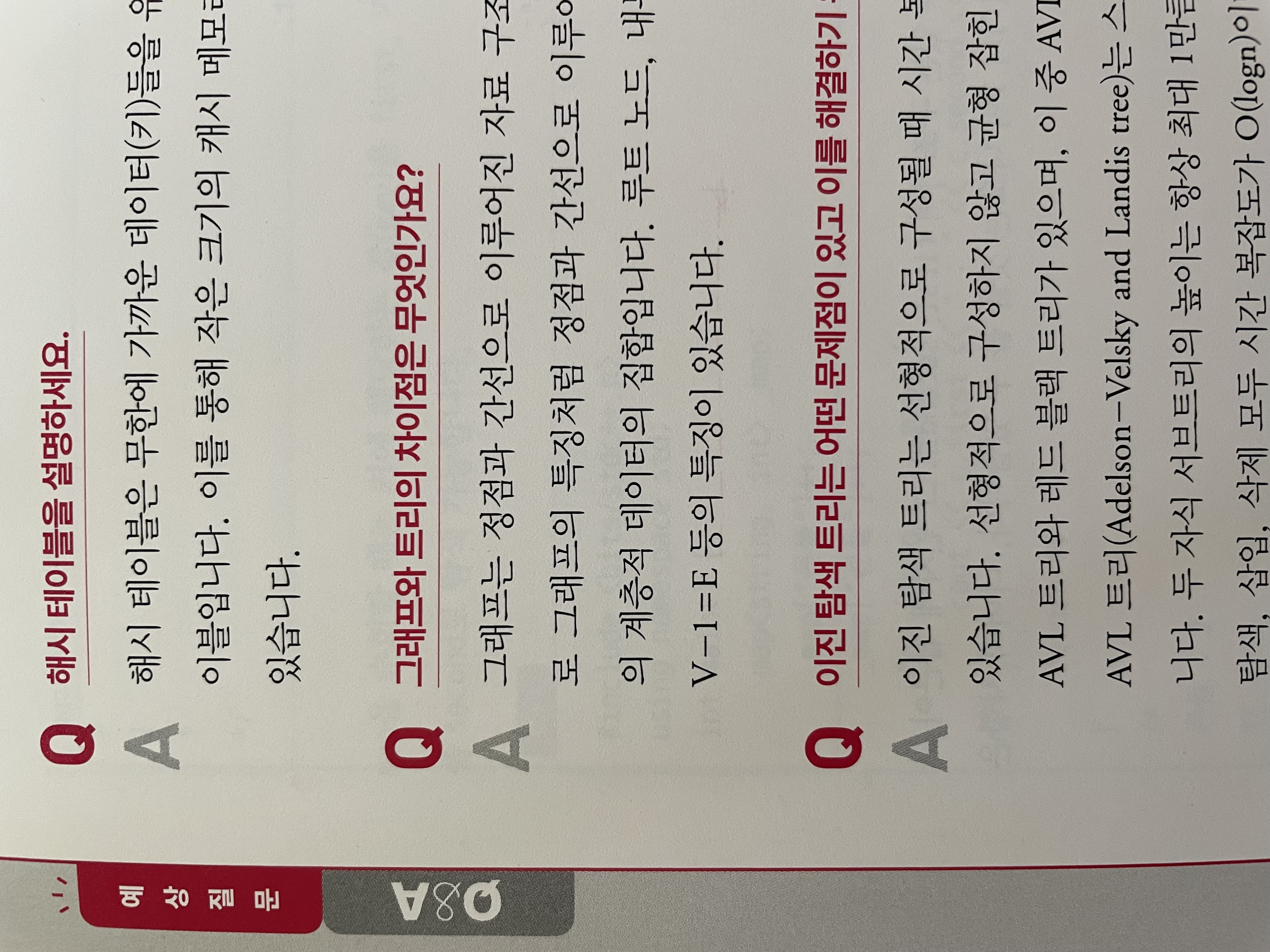 아래 이미지는 ‘5장. 자료구조’에 있는 것으로, 모든 장에는 그 장의 내용을 바탕으로 키워드가 될만한 용어들에 대해 알려주는 예상 질문 페이지가 있다.