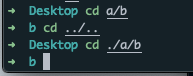 a에서 b로 가려면, 즉 상위에서 서브으로 가려면 그냥 바로 서브 이름 추가 (현 위치 의미하는 ./는 생략가능)